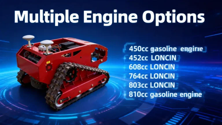 This mower features a 1000mm cutting width, is equipped with gasoline engines ranging from 450cc to 810cc, and features a 24V intelligent remote control system, providing powerful performance, enhanced safety, and superior efficiency even in challenging terrain.