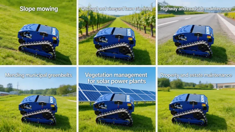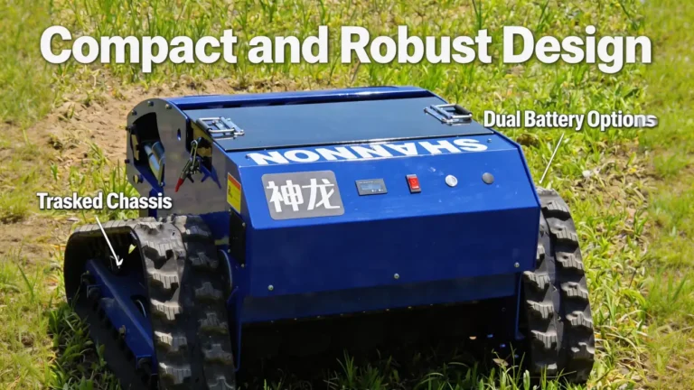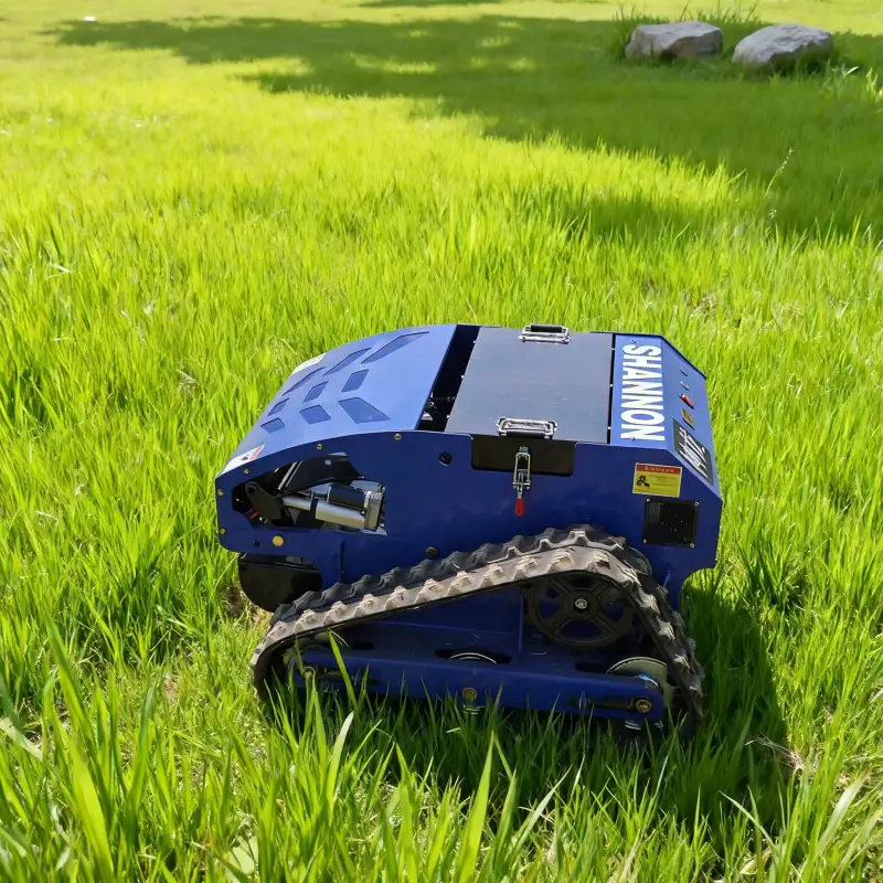 The SN-550IEC remote control lawn mower is a compact, tracked, electric brush cutter designed for efficient lawn mowing on slopes, rugged terrain, in orchards, and in hard-to-reach areas. Equipped with a powerful 24V battery system and an industrial-grade remote control, it provides safe, precise, and labor-saving mowing performance.