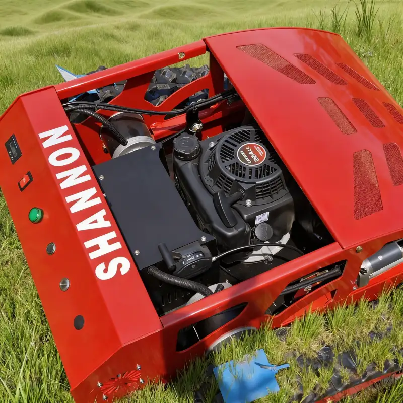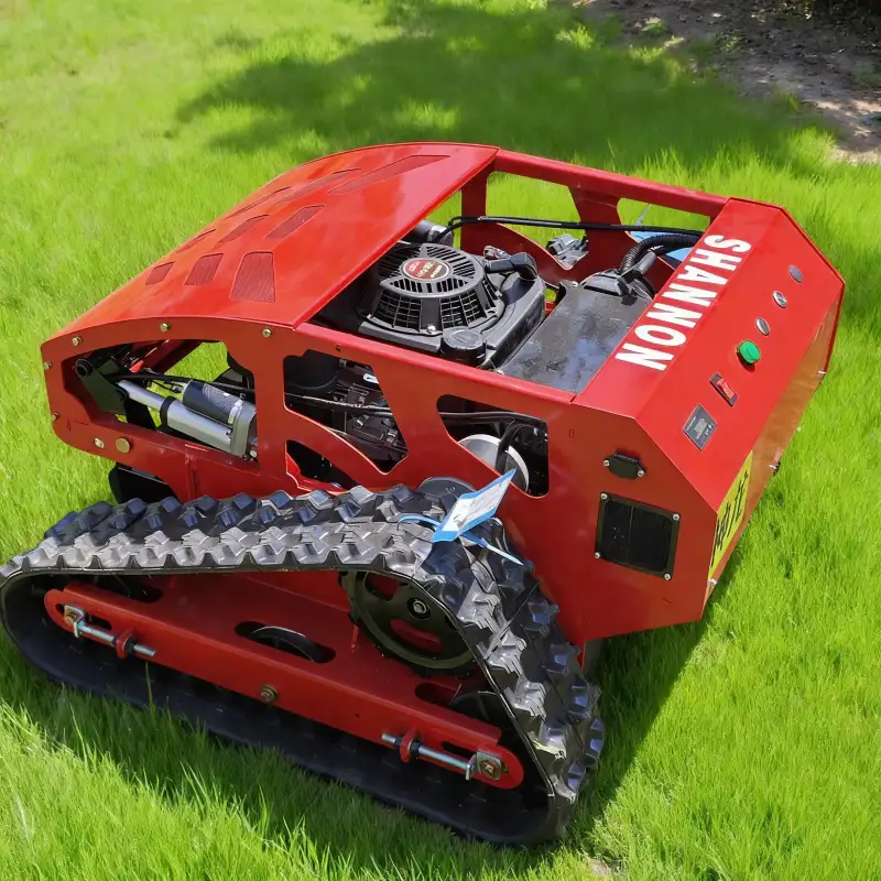 The SN550B remote control lawn mower is a compact yet powerful tracked brush mower designed for efficient lawn mowing on slopes, orchards, farms, and challenging terrain. Equipped with a remote control system, a high-performance gasoline engine, and durable tracks, it allows operators to mow from a safe distance while maintaining excellent cutting efficiency.