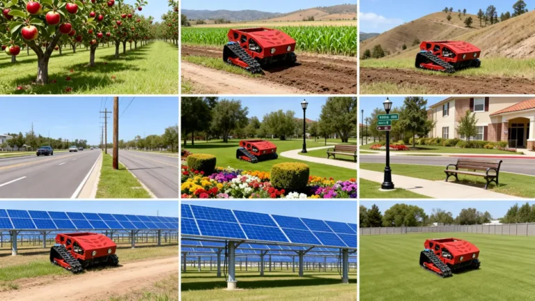 This remote control lawn mower is widely used in landscaping, agricultural maintenance, roadside lawn mowing, and property management, making it ideal for contractors and professional users.
